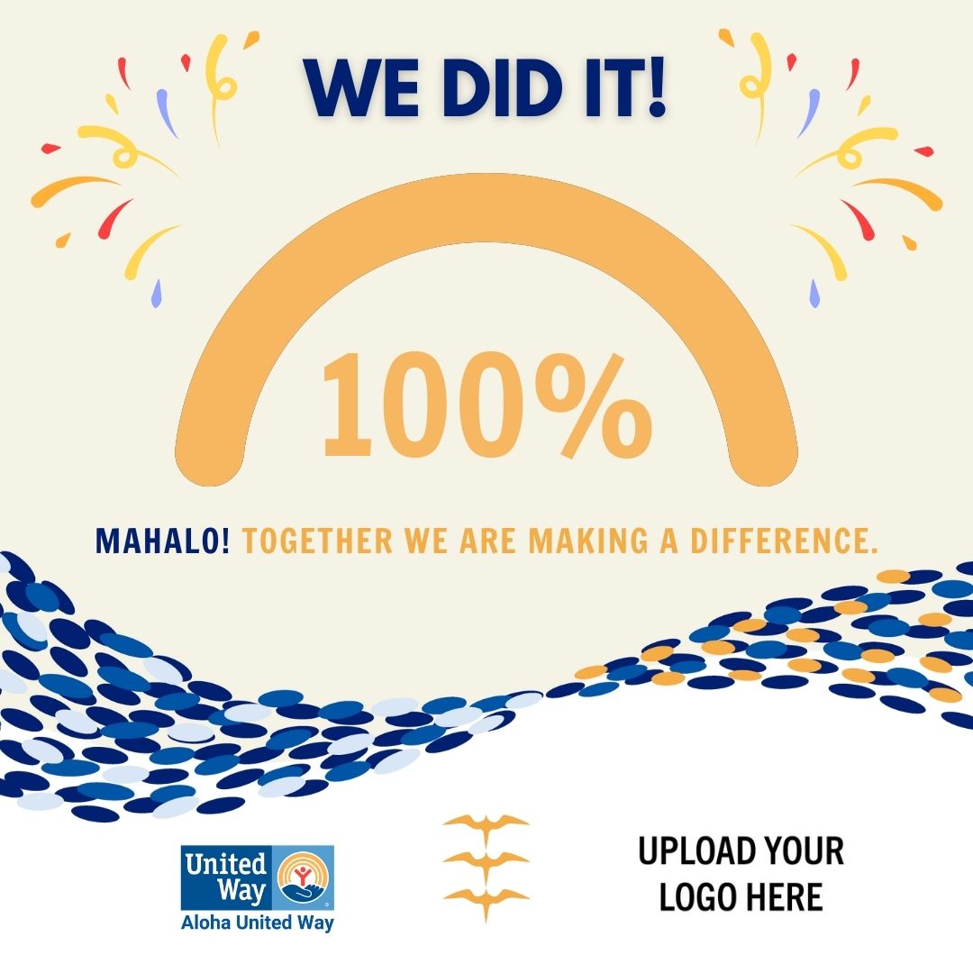 Sample Caption: Halfway through our Giving Campaign, we’re thrilled to announce that we’ve raised [insert amount] for @AlohaUnitedWay and the local nonprofit community! Our team truly has come together in such a special way to raise these donations…
